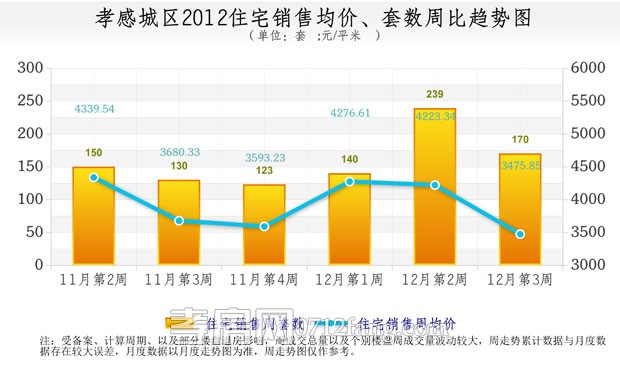 一周樓市走勢相關數(shù)據(jù)是以孝房網(wǎng)市場研究調(diào)研和統(tǒng)計處理得出,由于周價格受該周成交的樓盤及樓盤成交的具體房屋影響較大,故一周走勢能反映短期的變化狀態(tài),不能代表長期的走勢,供市民參考。
